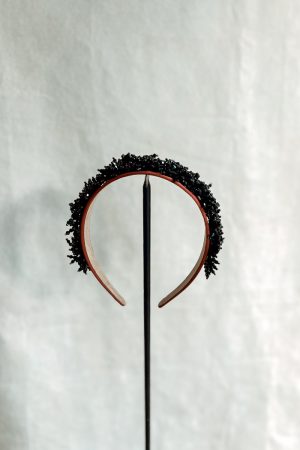 Diadema de pétalos de organiza y terciopelo. Perfecta para combinar con look de invitada. Garantiza una correcta colocación y una comodidad absoluta al llevarlo.