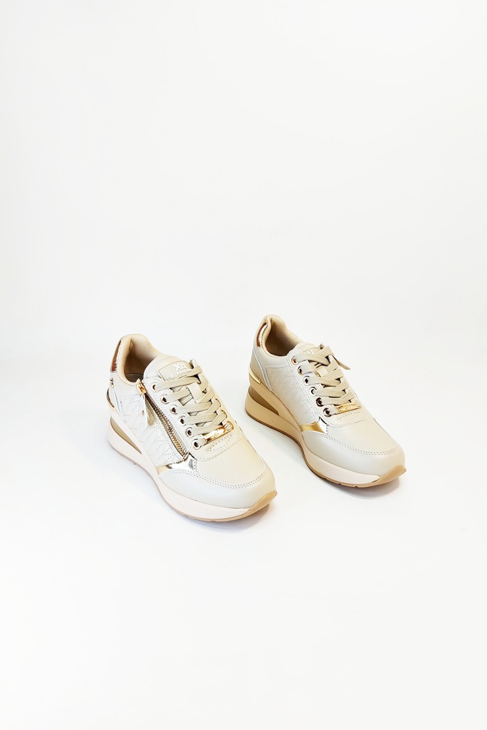 Zapatillas deportivas beig cuña, detalle cremallera lateral.
