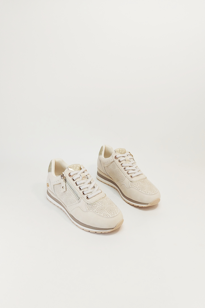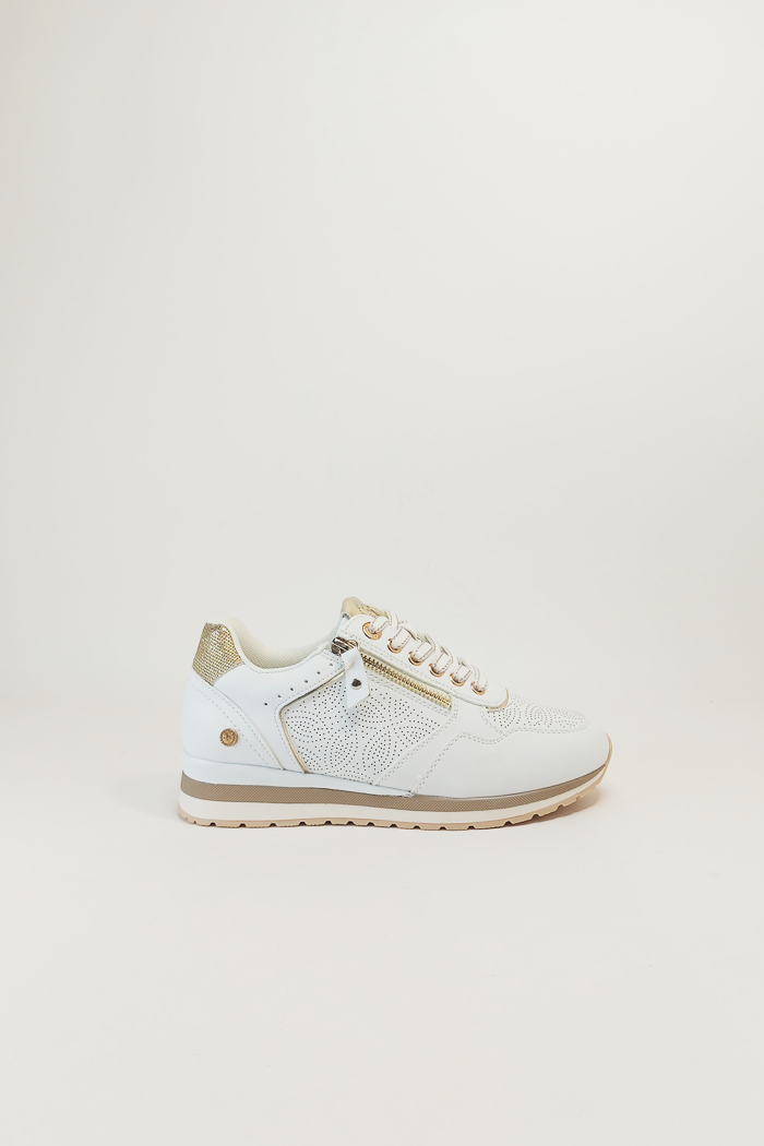 Zapatilla de mujer de la marca Xti. Fabricada en material que imita la piel. Con cierre mediante cremallera lateral y cordones ajustables. Suela de goma antideslizante. Modelo esencial básico para tu armario. Con plantilla extraíble. Este modelo ha obtenido el certificado vegano por la organización mundial PETA (Organización de los derechos de los animales). Se puede combinar fácilmente con cualquier look del día a día.