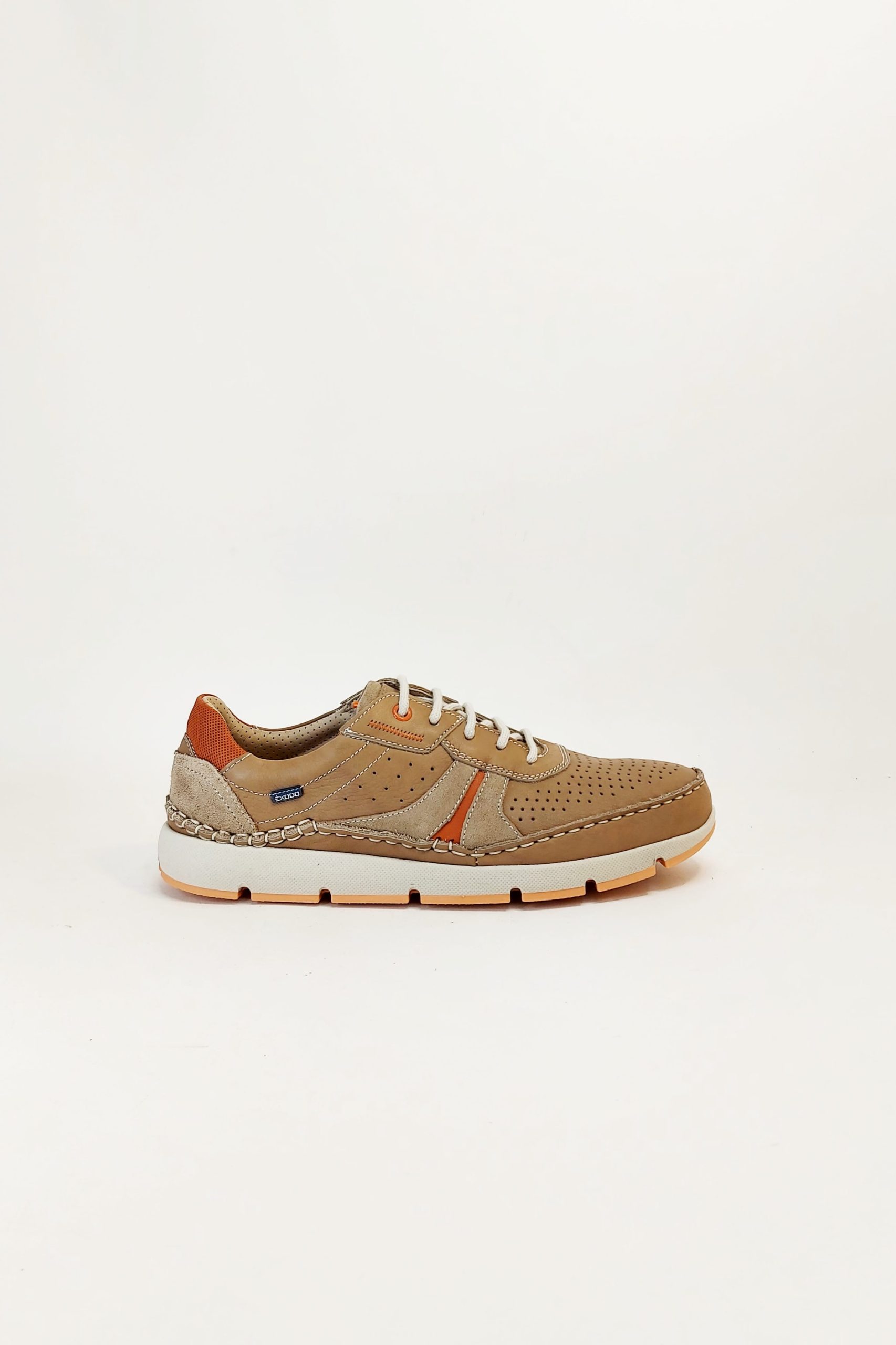 Zapatilla de piel calada combinada. Suela de goma ultra ligera. Altura de la suela 2cm. Son muy cómodas, se adaptan a todo tipo de pies. Cierre con cordones. Comodidad y estilo, una zapatilla ideal para cualquier ocasión. Diseñada y fabricada en España.
