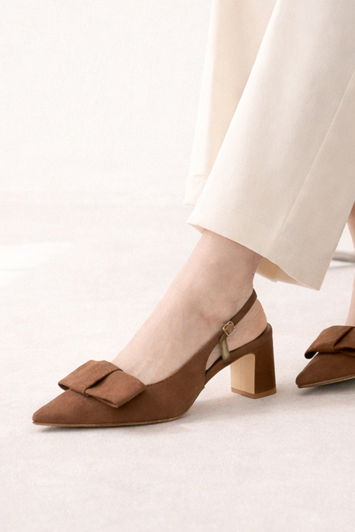 Zapato destalonado con detalle de lazo en la parte delantera.